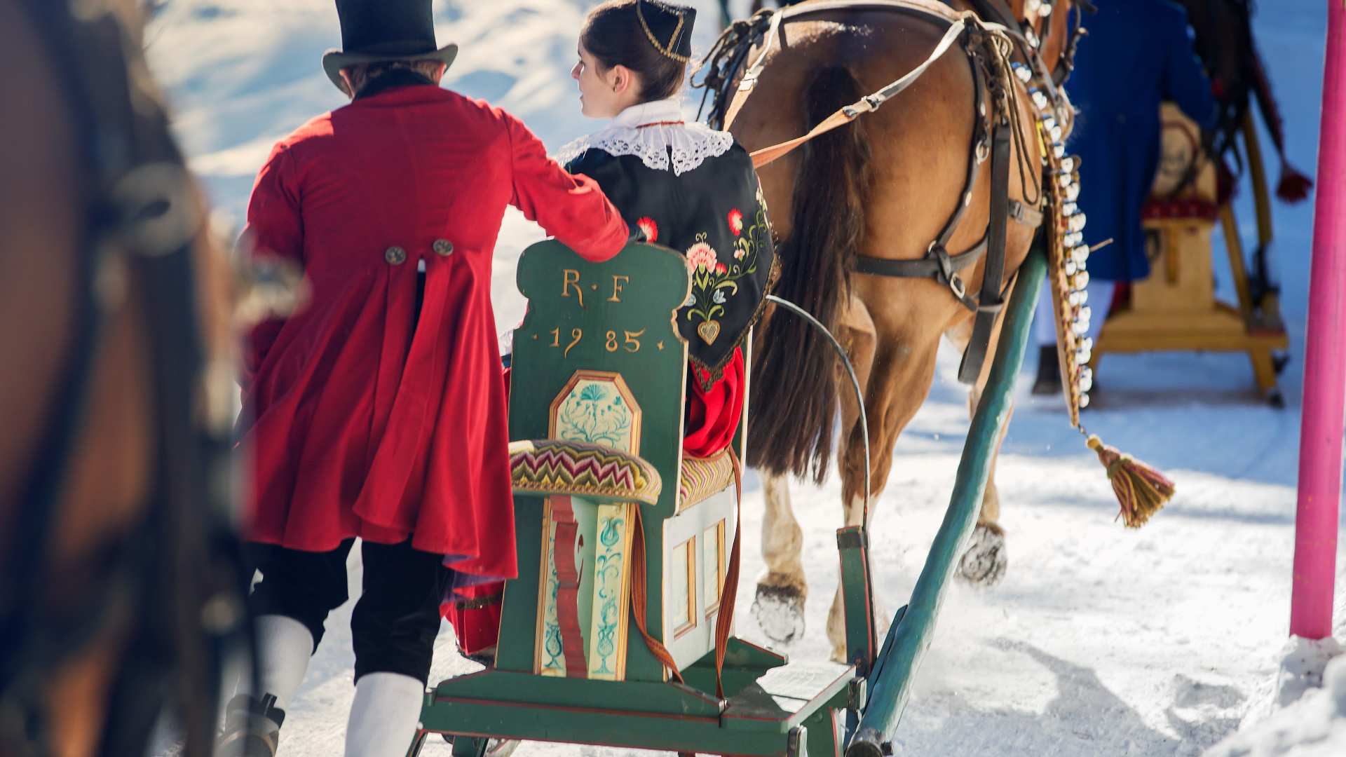 Noch bevor die Sonne im Januar über die verschneiten Berge von St. Moritz aufgeht, bereiten die Männer ihre Schlitten vor, spannen die Pferde ein und ziehen in Frack und Zylinder los. Die Schlitteda findet hier an einem Januarwochenende statt und verbindet Tradition mit winterlicher Eleganz. Am darauffolgenden Wochenende wird der Brauch in Champfèr weitergeführt. Seit rund 200 Jahren gehört die Schlitteda im Oberengadin dazu. Früher war eine Einladung fast ein Verlobungsversprechen, heute ist sie offen für alle. Geblieben ist die Tradition: Die Frauen sitzen vorne, die Männer lenken dahinter die Pferde durch die verschneite Landschaft.